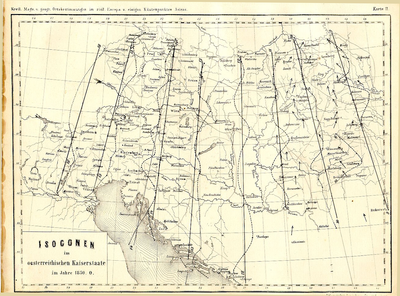 Die erste Landesaufnahme der Monarchie wurde von Karl Kreil, dem ersten Direktor der „k.k. Central - Anstalt für Meteorologie und Erdmagnetismus“, in den Jahren 1843 -1858 durchgeführt. Eine wichtige Motivation für dieses imposante Projekt war die Bestimmung der magnetischen Deklination, welche die Kompassabweichung zwischen der magnetischen und der geographischen Nordrichtung angibt. Diese betrug damals etwa 15° nach Westen, sie war für Schifffahrt und für das Militärwesen sehr wichtig, da mit Kompass navigiert wurde.
