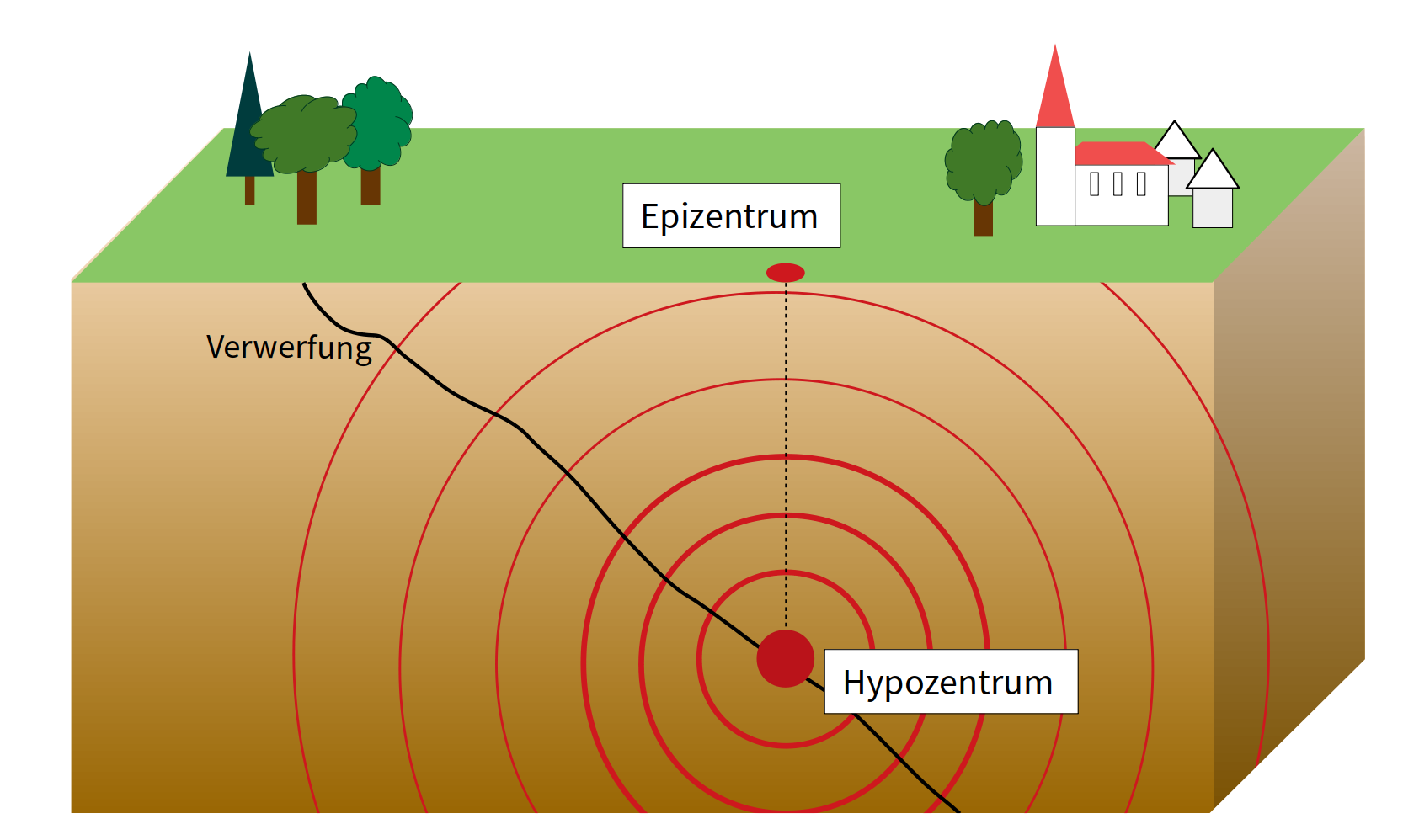 Das Epizentrum ist die senkrechte Projektion des Hypozentrums auf die Erdoberfläche.