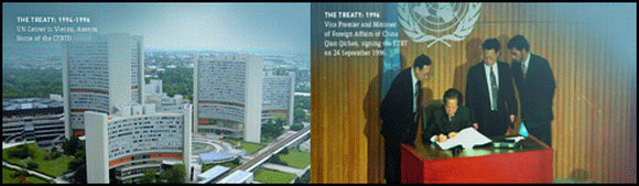 Um Nuklearwaffentests einzuschränken, wurde bereits 1963 von einigen Staaten ein Partial Test Ban Treaty (PTBT) unterzeichnet, der Tests in der Atmosphäre, im Meer und im Weltraum untersagt. Nach vielen Jahren von Vorbereitungen und Verhandlungen zwischen den Unterzeichnerstaaten wurde am 24. September 1996 der Vertrag über das Umfassende Verbot von Nuklearversuchen (Comprehensive Test Ban Treaty - CTBT) signiert. Dieser Vertrag soll sicherstellen, dass alle Versuche mit Nuklearwaffen und sämtliche Nuklearexplosionen, also auch unterirdische Tests, unterlassen werden. Der Vertrag tritt in Kraft, wenn er von den 44 namentlich im Annex 2 des Vertrags angeführten Staaten, darunter auch Österreich, ratifiziert wird. Bisher (Stand: April 2012) haben 183 von 196 Staaten den CTBT unterzeichnet und 166 diesen bereits ratifiziert ( http://www.ctbto.org/map/#status ).