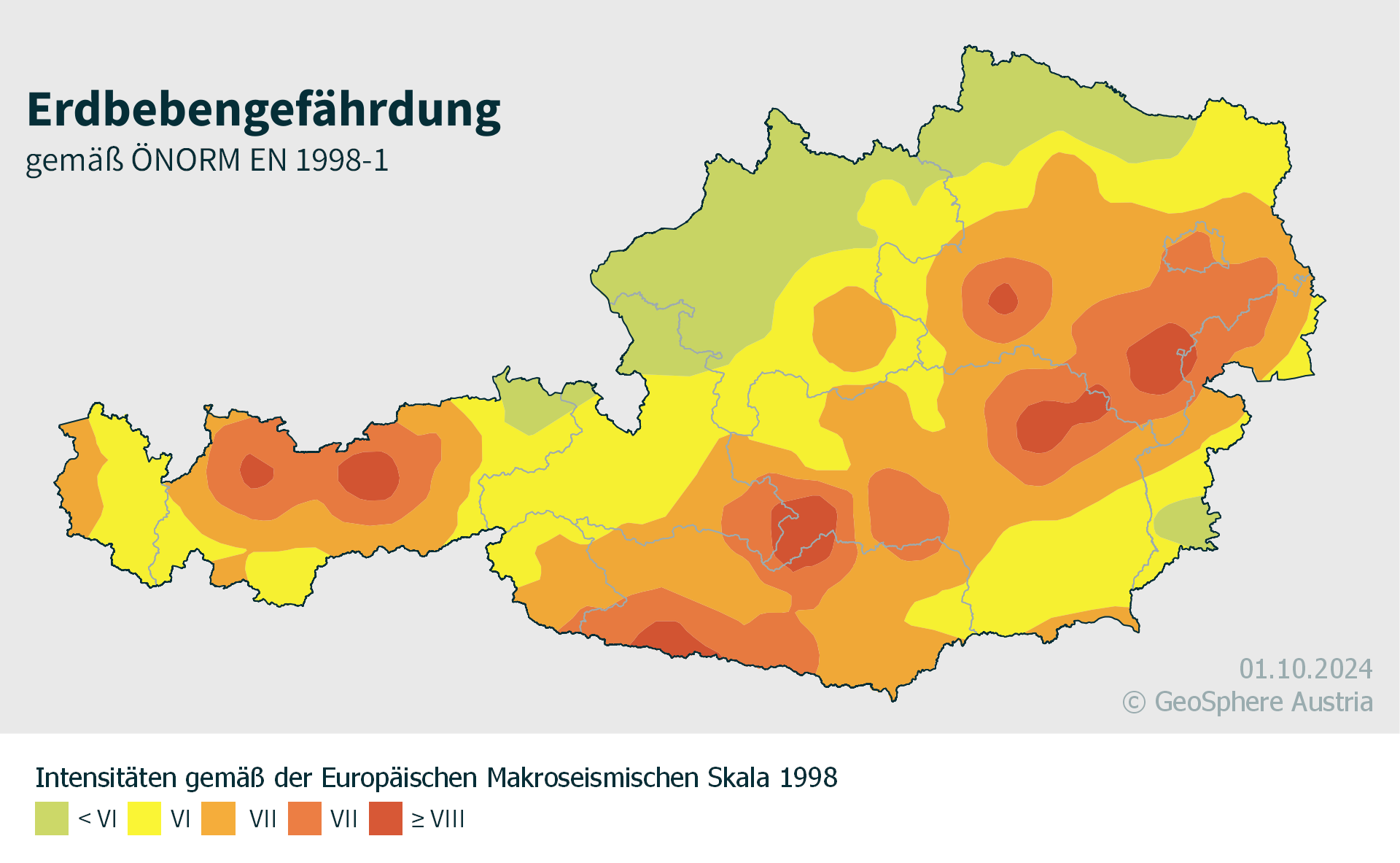 Aktuelle Erdbebengefährdungskarte von Österreich (seit 1997) © GeoSphere Austria