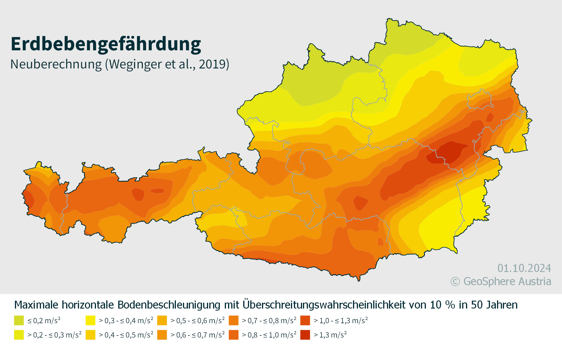 Erdbebengefährdungskarte nach Weginger et al. 2019 © GeoSphere Austria